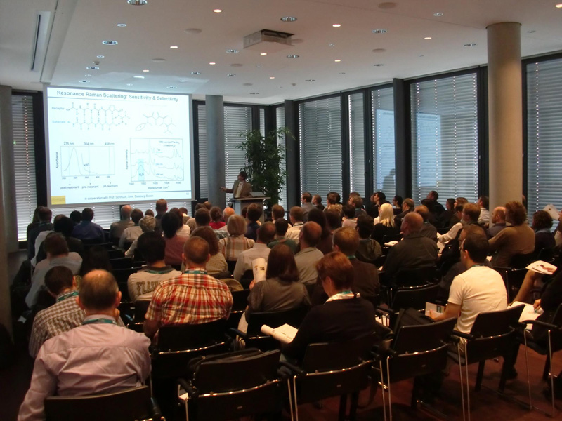 During the one hour contributed poster session with nearly 20 presentations the participants discussed intently the numerous applications and not a few delegates were amazed at the variety of possible successful applications of Raman Imaging in the various research areas. Another highlight of the first day was the dinner talk given by Professor Wolfgang Kiefer who even met Sir Chandrasekhara Raman personally and was one of pioneers of Raman spectroscopy in Germany. His eloquent and humorous historical review of Raman spectroscopy was very well received by the delegates as recounted the early days of Raman spectroscopy.