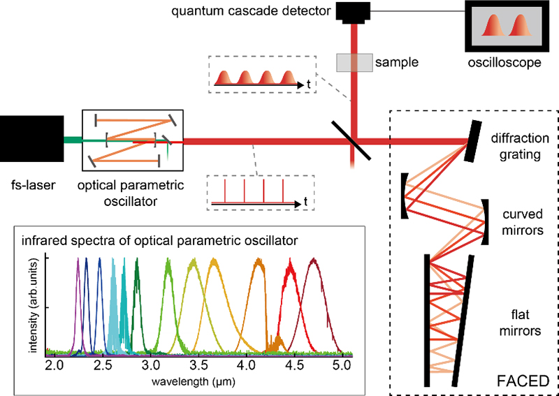 Time-stretch infrared spectroscopy works by stretching a very short pulse of laser light transmitted from a sample. As the transmitted pulse is stretched, it becomes easier for a detector and accompanying electronic circuitry to analyse it accurately. A key high-speed component that makes it possible is a quantum cascade detector, developed by one of the paper’s authors, Tatsuo Dougakiuchi from Hamamatsu Photonics.
