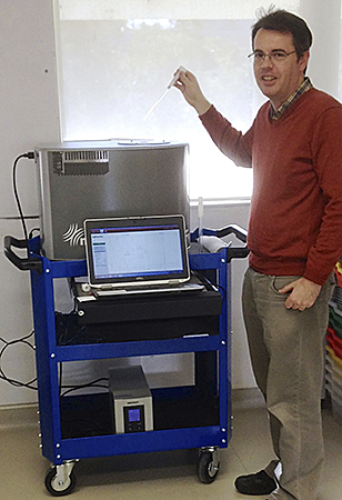Dr Sharpe has come up with a novel idea. He has his Spinsolve on a trolley which enables him to go from the second floor first year labs up to the fourth floor Advanced Teaching Laboratory and the fifth floor laboratory for second and third year students. This is possible because of the Spinsolve’s size, the fact that it does not need cryogens and requires just a single power socket. The students really feel they can now embrace NMR as a usable technique rather than another mystical tale from the chemistry text books.