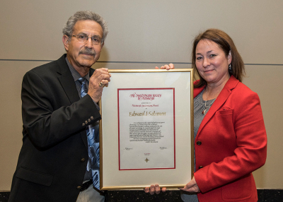The Pittsburgh Spectroscopy Award was given to Edward I. Solomon, who received his PhD at Princeton, and was a postdoctoral fellow at the Ørsted Institute in Denmark and then at Caltech. He was a Professor at the Massachusetts Institute of Technology until 1982, when he joined the faculty at Stanford University, where he is now the Monroe E. Spaght Professor of Chemistry and Professor of Photon Science at SLAC. Professor Solomon’s research is in the fields of Physical–Inorganic and Bioinorganic Chemistry with emphasis on the application of a wide range of spectroscopic methods combined with QM calculations to elucidate the electronic structure of transition metal sites and its contribution to physical properties and reactivity.