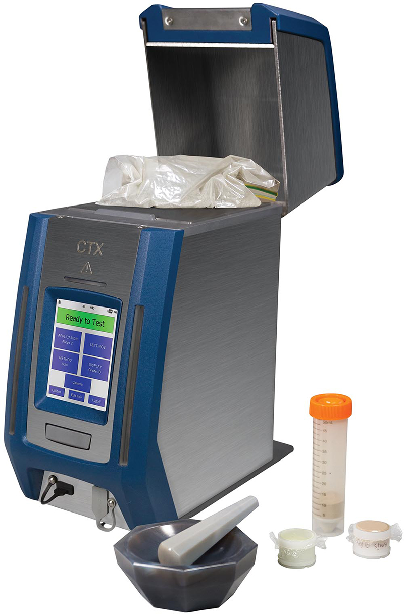 Bruker’s new CTX™ X-ray fluorescence (XRF) elemental analyser is a portable Counter Top XRF (CTX) instrument. The self-contained CTX weighs less than 7 kg and has a footprint of 14 cm wide. The CTX uses a 4 W X-ray source, a high-performance silicon drift detector (SDD), as well as Wi-Fi, Bluetooth and USB connectivity. The CTX’s touchscreen user interface provides measurement control and results display. Additionally, Bruker’s Toolbox PC software enables remote operation of the CTX and optional PC software includes Artax™ for advanced qualitative, semi-quantitative composition analysis, as well as EasyCal™ for user-defined empirical correlations. The CTX is available in several configurations optimised for different industries and applications, such as minerals and mining, food safety and agriculture, pharmaceutical raw materials, precious metals, polymers and marine fuel oil analysis. It is specifically designed for applications which require sample preparation and/or sample presentation in a cup or bag, as well as for small samples and samples which require measurement times of more than a few seconds. While the CTX was primarily designed for deployment in mobile and field labs, it is also well suited to central labs and on the factory floor for quick pre-screening or routine analysis, and as a back-up for larger XRF or ICP/AA systems.