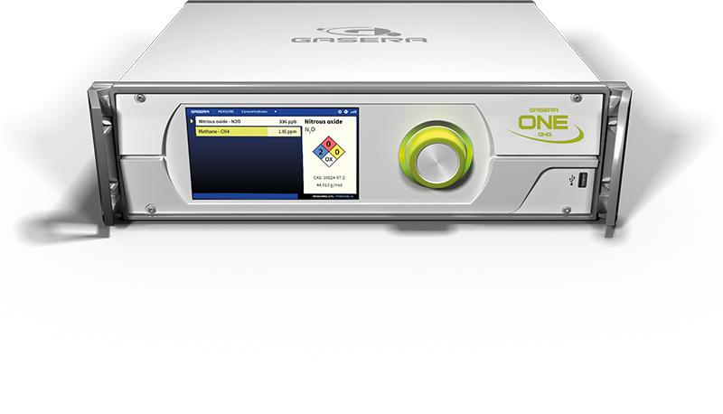 The Gasera One GHG greenhouse gas analyser is based on the Gasera One platform combining cantilever-enhanced photoacoustic detection technology with a quantum cascade laser source operating at a mid-IR fundamental spectral absorption line of the target greenhouse gases: methane (CH4) and nitrous oxide (N2O). This provides ppb sensitivity to measure ambient background levels of methane and nitrous oxide. It also gives an exceptionally high level of stability with a recommended recalibration period of 12 months. The analyser can measure CH4 and N2O simultaneously, its short optical path provides a wide dynamic range and only a few mL of sample are required.