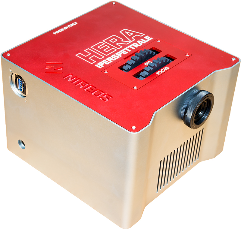 NIREOS, a spin-off from the Politecnico di Milano University, has introduced a new hyperspectral camera, HERA. This is a compact device (15.7 x 15.5 x 11 cm) and can capture a continuous spectrum in the 400–1000 nm region of each pixel of a scene in just a few seconds. HERA is based on a patented Fourier-transform technology, which dispenses with filters or gratings, which typically limit the light throughput. Instead, HERA employs an ultra-stable interferometer with a 1 cm clear aperture that ensures acquisition of images even in challenging conditions (such as low illumination light, fluorescent hyperspectral imaging etc.). HERA has <1 nm resolution at 400 nm wavelength. When it is not required, the user can choose via software to perform quicker measurements with worse spectral resolution. The software immediately provides the hyperspectral processed image and offers the capability to perform a first data analysis, enabling the user to check and compare the spectra of selected pixels.