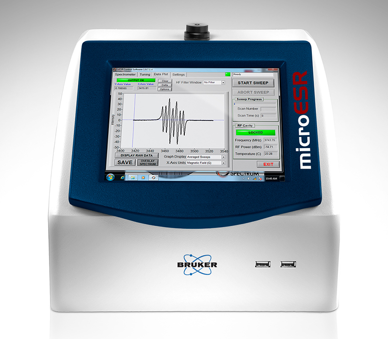 microESR is a portable, research-grade ESR spectrometer. It weighs 10 kg and measures 30.t × 30.5 × 30.5 cm3, so can fit in a fume hood or glove box, as well as being used in the field. It requires no special installation or regular maintenance. It will also be of use in undergraduate teaching labs.