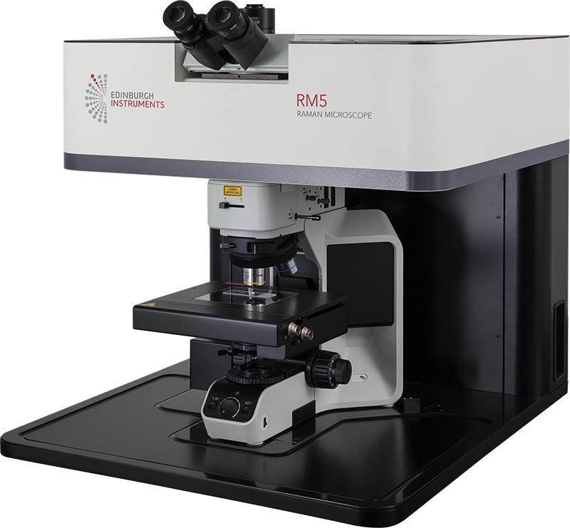 The RM5 is a compact and fully automated Raman microscope, suitable for analytical and research purposes. It is truly confocal, with variable slit and multiple position adjustable pinhole for higher image definition, better fluorescence rejection and application optimisation. It can accommodate up to three computer-controlled lasers and has a five-position grating turret enabling spectral resolution of 1.4 cm–1 (FWHM) and optimisation over the full spectral range of 50–4000 cm–1. Up to two integrated detectors can be added, including high efficiency CCD, EMCCD and InGaAs arrays.