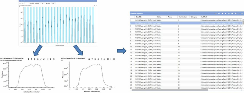 In collaboration with SpectralWorks, IonSense have added features to their AnalyzerPro XD software to permit parsing of samples within a single data file to individual data files for each sample. After parsing, each of the individual parsed data files can be exported to CSV files with the mass spectrum masses and intensities. You can also search each parsed data file against any NIST MS database or your own database. Target compounds can be mapped and wells containing your targets can be identified with the visual heat map. Also, the amount in each well can be determined and quantified. Classification with PCA or the use of other statistical analysis techniques can be performed to further analyse your data.