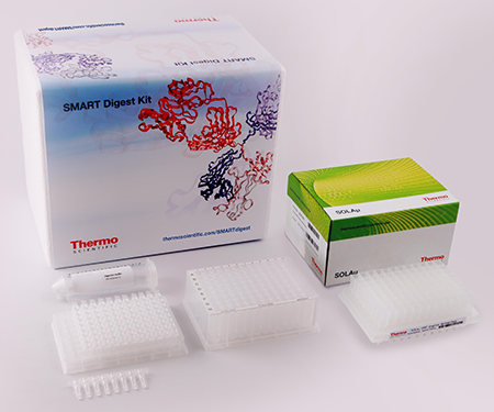 The Thermo Scientific SMART Digest kit is designed to reduce preparation times and associated errors, facilitating fast and reliable analytical results for biopharmaceutical and protein research applications. It uses a simple, three-step process that can be automated. Its immobilised trypsin design is formulated for high-quality data with a significantly reduced sample preparation time compared to traditional in-solution digestion methods.