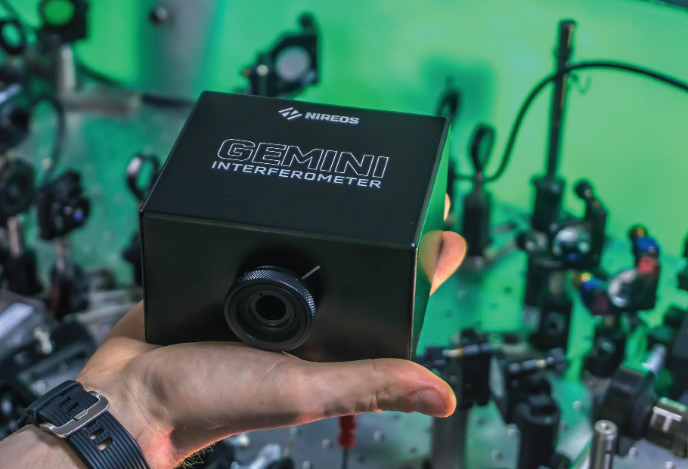 NIREOS has introduced the GEMINI interferometer, which can be used to measure the spectrum of a light source, either coherent (such as a broadband laser) or incoherent (light bulb, LED or fluorescence from a sample). GEMINI has high throughput with a 10-mm clear aperture (free space propagation with a collimated beam through the device, lacking entrance or exit slits); user-adjustable spectral resolution without affecting light throughput; spectral coverage of 250–3500 nm; easy alignment (plug-and-play operation); and a compact footprint (10 × 11 × 6 cm). It is equipped with control software and Labview examples for easy integration into existing setup systems. GEMINI can be used in applications including time- and frequency-resolved fluorescence, coherent Raman spectroscopy, pump-probe spectroscopy and fluorescence microscopy on single molecules.
