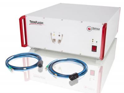 TOptica’s new time-domain terahertz platform, TeraFlash, and the CW-terahertz spectrometer, TeraScan, both have a peak dynamic range >90 dB. The TeraFlash generates THz spectra with a bandwidth of >5 THz, allowing layer thickness measurements down to 20 µm. The TeraScan provides frequency resolution better than 5 MHz, which enables precise spectroscopic measurements of trace gases.