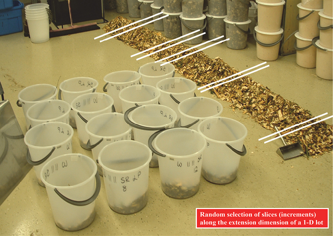 Often “slicing” in such a case amounts to nothing more than appropriate selection of units viewed as a basis for a time series of analytical results. But the 1-D lot can also manifest itself as a more or less continuous body (1-, 2-, 3-phase continuum) along the length dimension, in which case it is the sampler/sampling equipment that forcefully “cuts” the stream to produce the extracted units. The location of where, and how, to cut the stream of matter is of critical importance in process sampling.